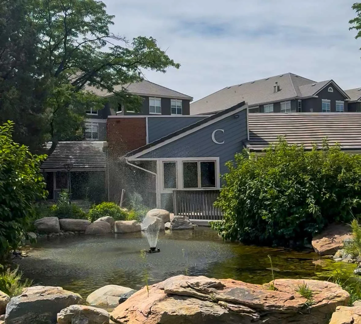 Our studio is tucked toward the back of the building for privacy and a peaceful atmosphere. When you arrive, look for the path and the water feature. If you have any trouble finding us, call and we’ll be happy to guide you.